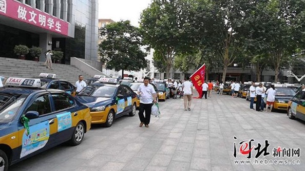 6点55分,石家庄市第17中学。近百辆出租车和私家车已经全部到位,准备接送应考考生。