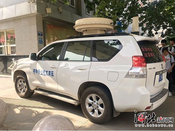 8点10分,石家庄市第1中学。无线电信号屏蔽车开进考点。
