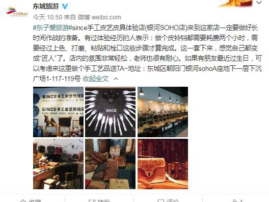 since手工皮艺皮具体验店(银河SOHO店)来到这家店一定要做好长时间作战的准备。有过体验经历的人表示:做个皮铃铛都需要耗费两个小时,需要经过上色、打磨、粘贴和栓口这些步骤才算完成。这一套下来,感觉自己都变成“匠人”了。店内的氛围非常轻松,老师也很有耐心。如果有朋友最近过生日,可以考虑来这里做个手工艺品送TA~