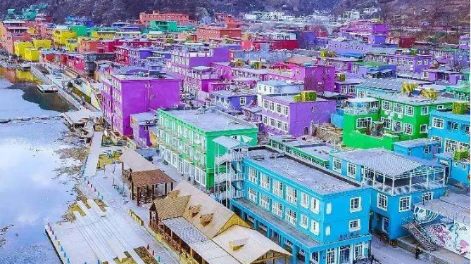 中秋刚过,国庆又近,北京周边景点游人如织。其中,河北省野三坡百里峡景区入口一侧,一道亮丽风景让游客流连忘返——百里峡七彩艺术小镇。“赤橙黄绿青蓝紫,犹如彩练山间舞”,远远望去,仿佛邂逅了一个童话王国,好不迷人。