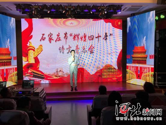 河北新闻网讯(记者曹铮)为回顾改革开放四十年来的伟大历史进程,热情讴歌四十年来石家庄城乡建设的显著成就和人民精神风貌的巨大变化,10月18日,由石家庄市文联主办的“辉煌四十年”诗文音乐会在石家庄市图书馆报告厅举行。