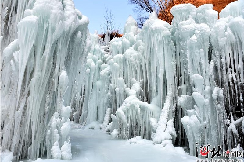 1月1日,在邢台天河山风景区拍摄的冰瀑景观。由于持续的寒冷天气,邢台天河山风景区形成多处冰瀑景观,美丽的冰瀑吸引了众多游客前来观赏拍照。 记者赵永辉摄影报道