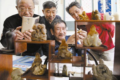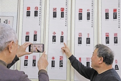 前来参观的人大部分是中老年人,有的人不时拿出手机对展品拍照,有的三五成群在和作者交流。年过古稀的高金祺看过展览后表示:“篆刻、书画艺术是我国传统文化的瑰宝,参观这次展览,让我很长见识,学到许多东西。”《海河文学》杂志主编张莉莉道出了自己的体会:“展览中让我印象最深的是篆刻,我觉得他们刻的印形富于变幻,什么样子、字体都有,内涵丰富,而且刀法苍劲有力,有独到的创意,充分体现了中老年人老有所为、老有所乐的精神。”