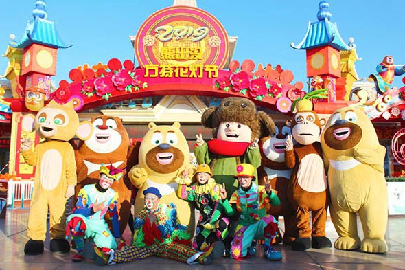 熊出没方特花灯节,将儿童喜爱的《熊出没》动漫人物与传统花灯完美结合。生肖喷泉旁的6组花灯,将《熊出没》大电影里的主角,从荧幕搬到现实生活中;树屋旁的“欢乐时光”灯组,因憨态可掬的萌版熊大熊二、稚嫩可爱的小光头强,而深受小朋友喜欢。光头强之家旁的“丛林”花灯,津门大峡谷旁的“原始时代”灯组,海螺湾旁的“月亮湾”……各种造型的花灯将园区装点的分外美丽。