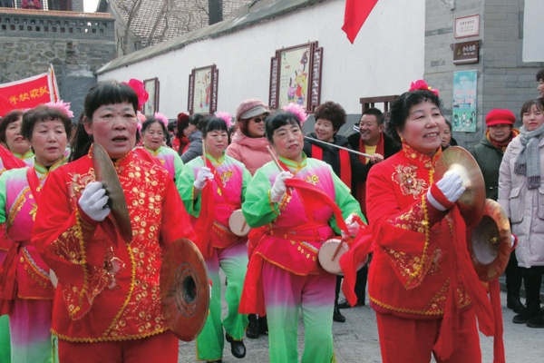 随后进行的老年秧歌队和腰鼓队表演也是喜庆、热闹,表演者们精神饱满,在锣鼓的伴奏下,秧歌队的动作整齐划一,悠扬的鼓点把现场气氛再次调动起来,引发阵阵喝彩声,让观众深切地体会到了民间艺术的魅力。随着队伍一路来到关帝庙,在这里,市民们除了观看精彩的演出外,还能吃免费元宵、猜灯谜,年味十足。