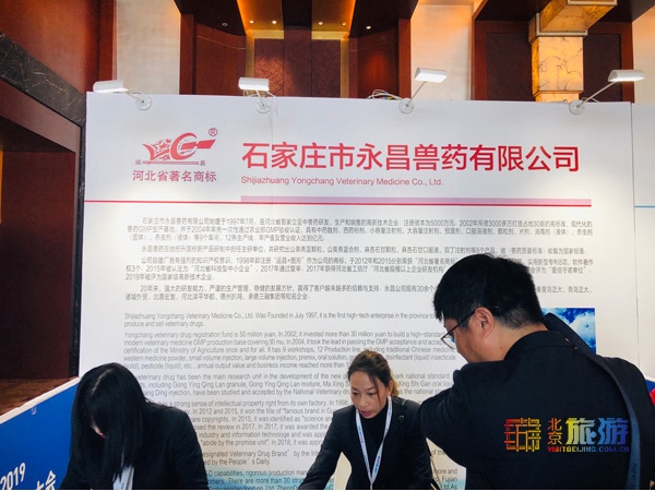 石家庄市永昌兽药有限公司作为2019“一带一路国际商协会大会”的参展方,在大会举办地北京国际饭店三层展位十分宽敞。据介绍,石家庄市永昌兽药有限公司创建于1997年8月,是河北省首家获得国家农业部GMG认证的骨干企业。公司目前有200多个产品批号,产品的销售范围遍布全国各地。在工艺上有9项实用新型发明专利,另有一项发明专利。
