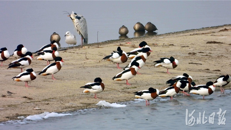 一群翘鼻麻鸭在滹沱河栖息觅食。河北日报记者田瑞夫摄影报道