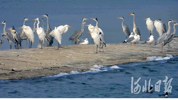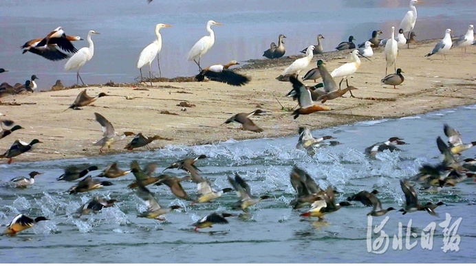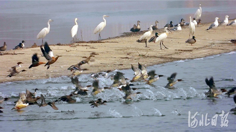 一群候鸟在滹沱河景区石家庄段栖息。河北日报记者田瑞夫摄影报道
