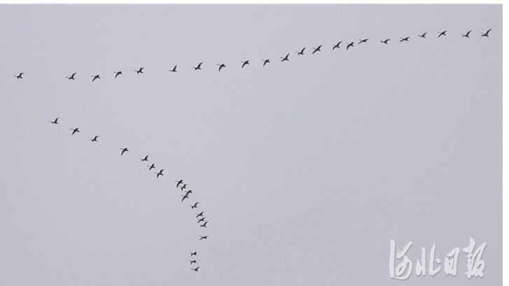 近日,滹沱河景区石家庄段迎来了北迁大天鹅、翘鼻麻鸭、黄嘴白鹭、普通秋沙鸭等20余种数千只鸟儿前来栖息觅食。其中黄嘴白鹭、翘鼻麻鸭、白琵鹭等为罕见鸟种。 河北日报记者田瑞夫摄影报道