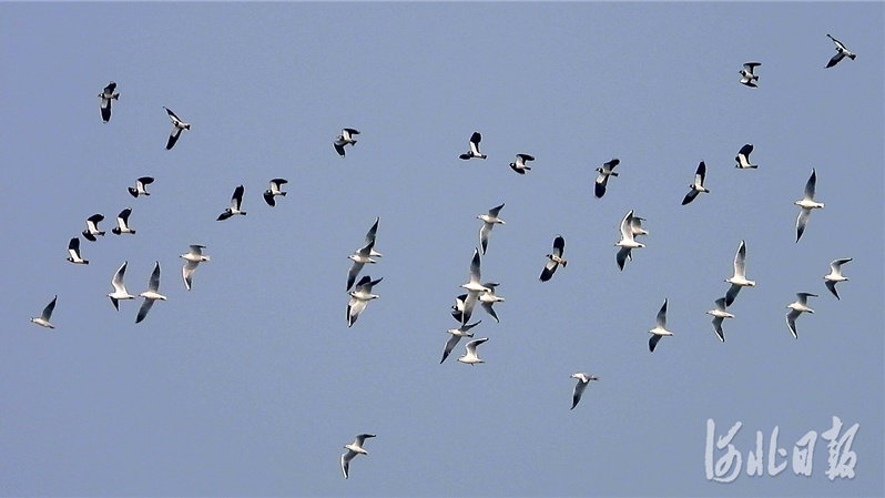 一群凤头麦鸡和红嘴鸥、渔鸥在滹沱河景区上空翱翔。河北日报记者田瑞夫摄影报道