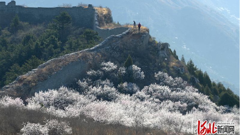 2020年4月8日,游客在长城上踏青赏花。通讯员 陈儒 摄影报道