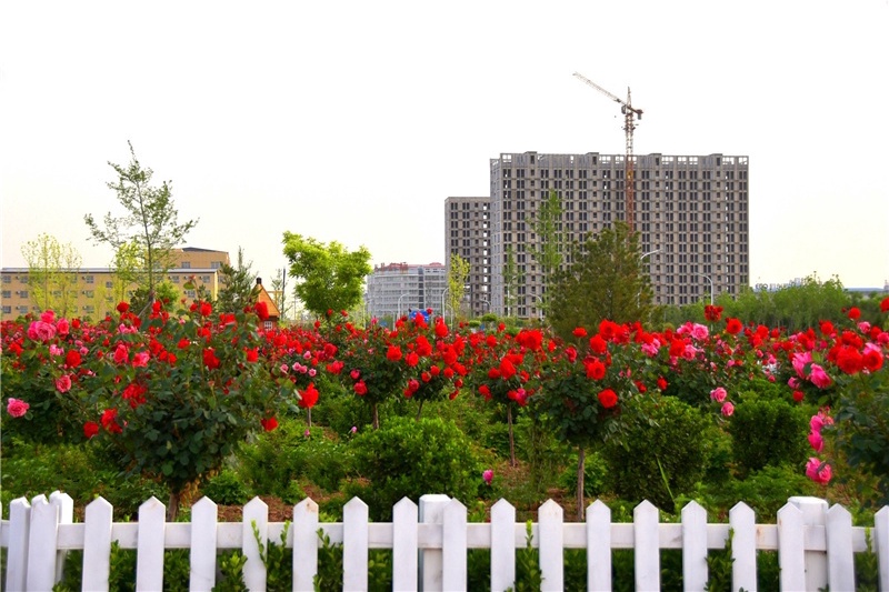 2020年05月11日河北广平县 太极景观大道两旁的百亩月季花竞相开放,一团团、一簇簇争奇斗艳,芳香扑鼻,微风吹过浓郁的花香让人心旷神怡,成为城乡居民休闲赏花的好去处。通讯员杨海斌摄影报道