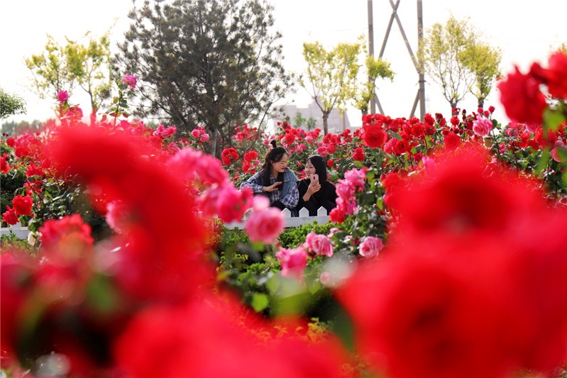 2020年5月13日,河北省邯郸市广平县游人在玫瑰“花海”中游玩。 通讯员程学虎摄影报道