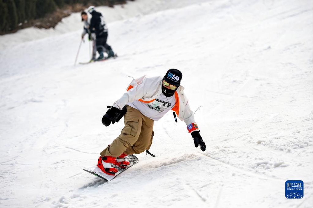 近日,游客在山东省青州市驼山滑雪场滑雪。