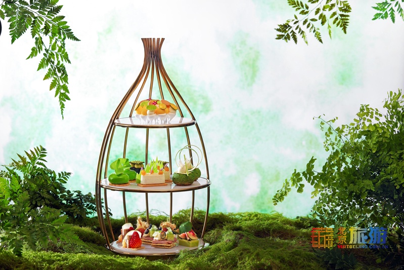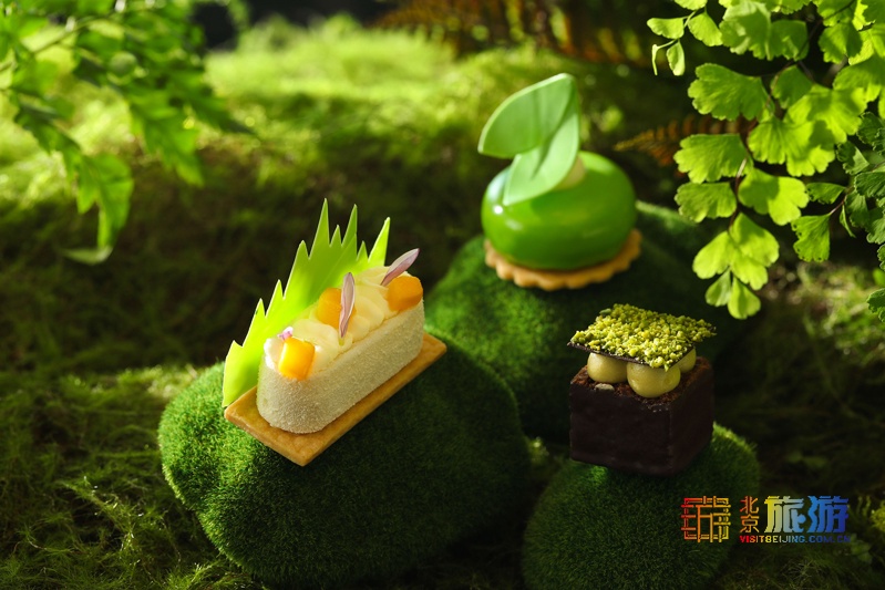北京JW万豪酒店厨师团队以绿色自然气息为灵感,赋予点心精巧生动的造型,打造口感清新香甜的“觅•青森”下午茶。