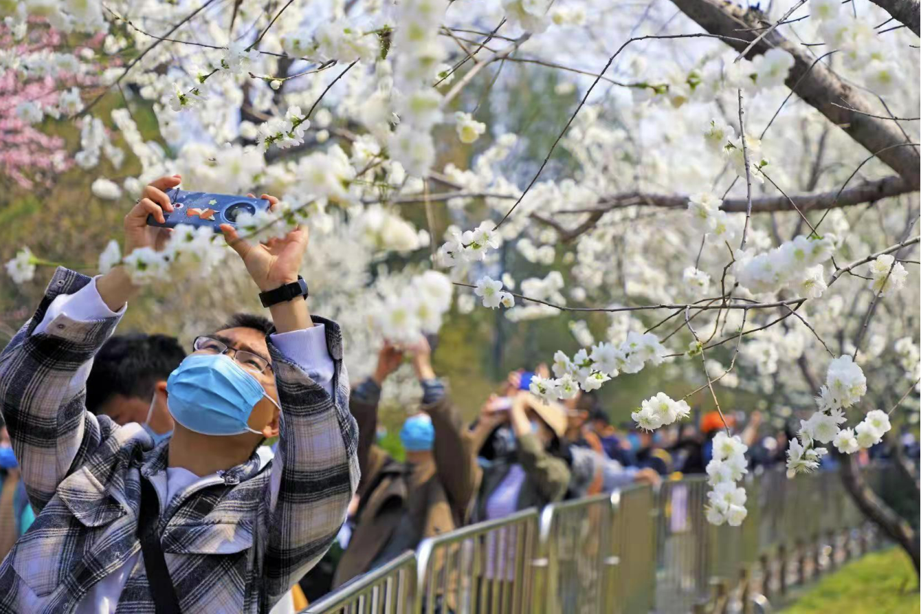 清明假期市属公园推出赏樱花、梅花、玉兰、杏花等30处、43个点位赏花踏青场所,引导游客分散赏花、错峰游园打卡留念。早樱盛放的玉渊潭公园、北京植物园梅园、颐和园玉兰花开的乐寿堂等处都成为游客热门赏花观景打卡地,天坛公园西北外坛的杏花林、香山公园碧云寺、颐和园后山中御路、中国园林博物馆塔影别苑等处的杏花、连翘、梅花小众赏花推荐地都受到游客喜爱。市民游客徜徉花间,感受园林中的春景,文明观花拍照留念,游园氛围和谐美好。