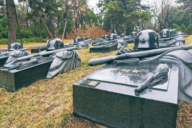 如今,八宝山革命公墓对设施较新的烈士纪念园也进行了修缮维护。3月份刚刚完成一场“换枪”仪式,园区将枪碑墓区出现破损的40余把石刻钢枪进行了集中更换。