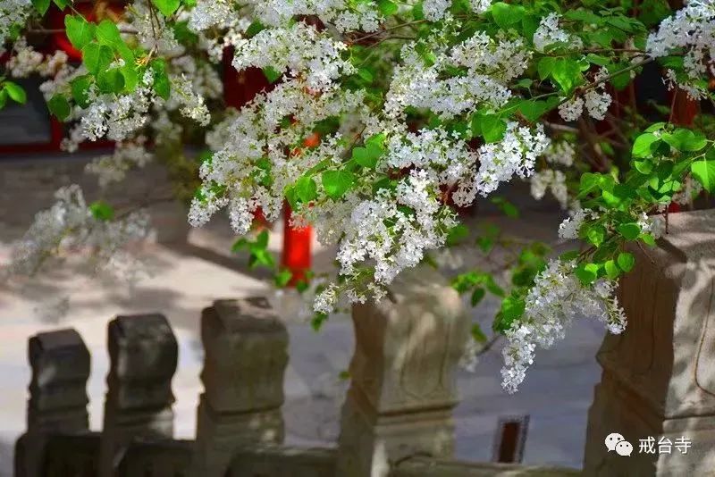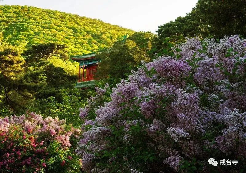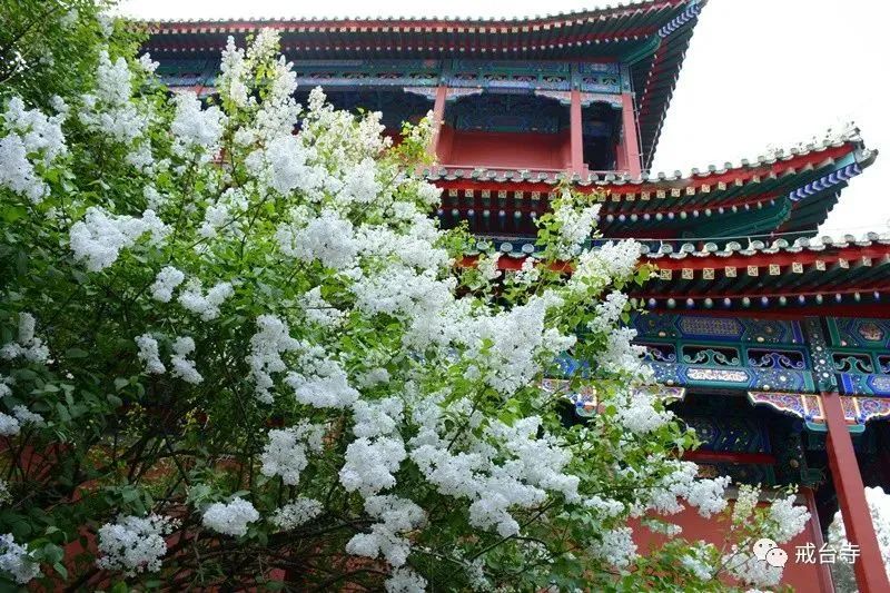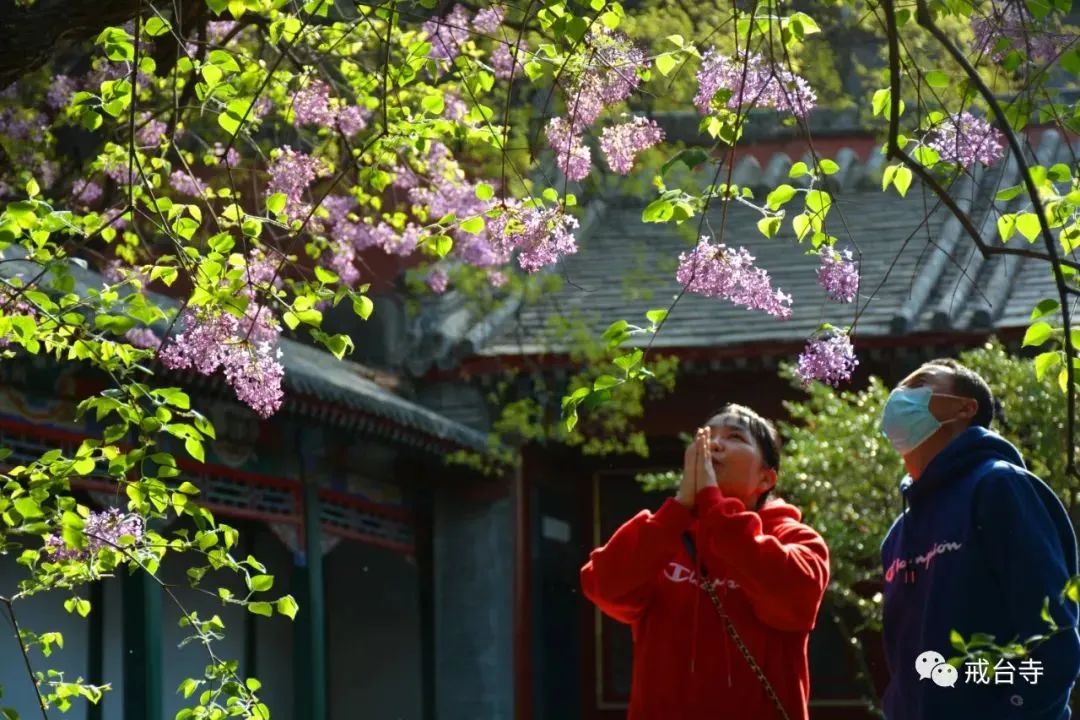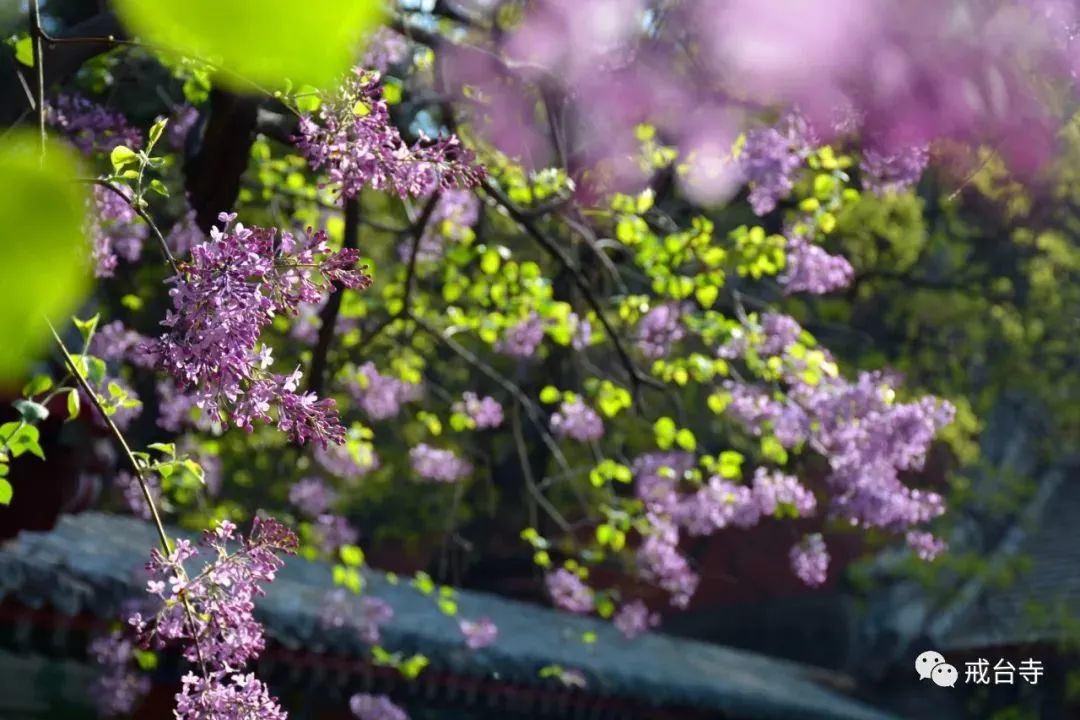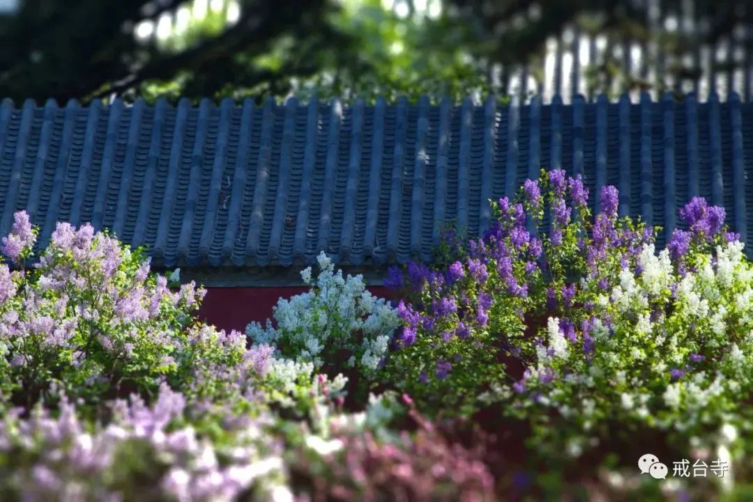 鸟语花香、红墙绿瓦、苍松翠柏,错落有致的掩映在戒台寺丁香花海中,构成一幅唯美的禅刹春图。