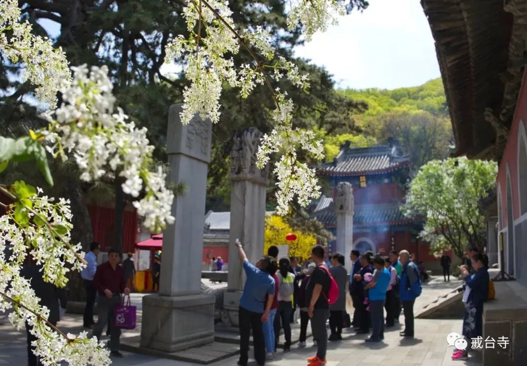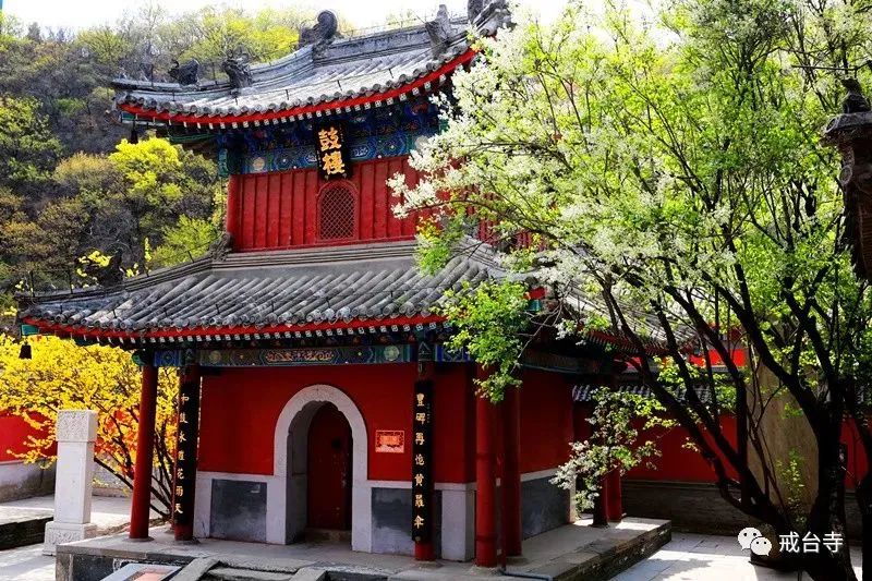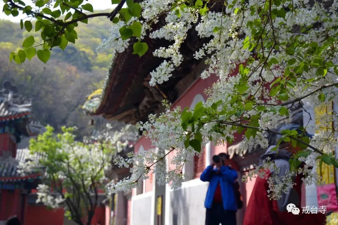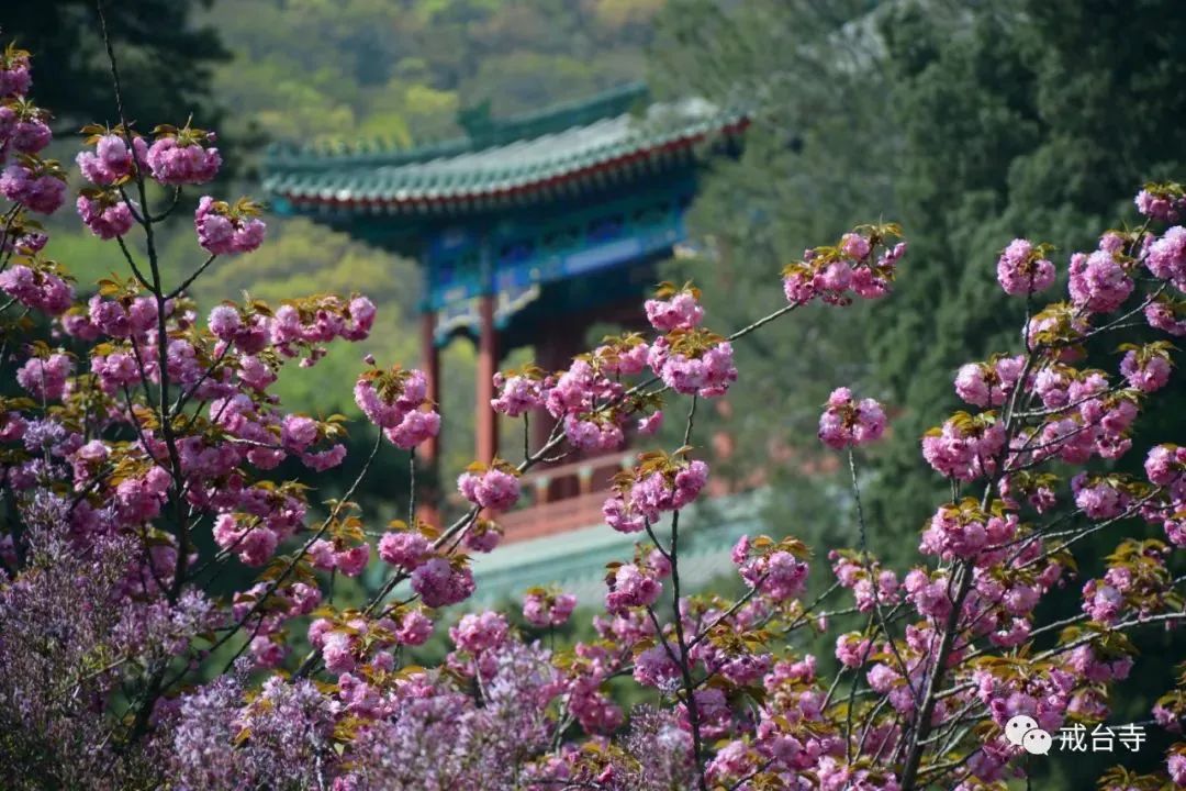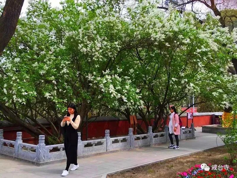 鸟语花香、红墙绿瓦、苍松翠柏,错落有致的掩映在戒台寺丁香花海中,构成一幅唯美的禅刹春图。