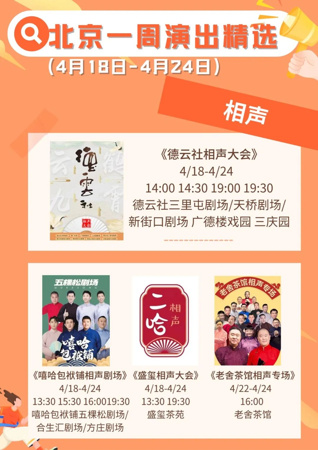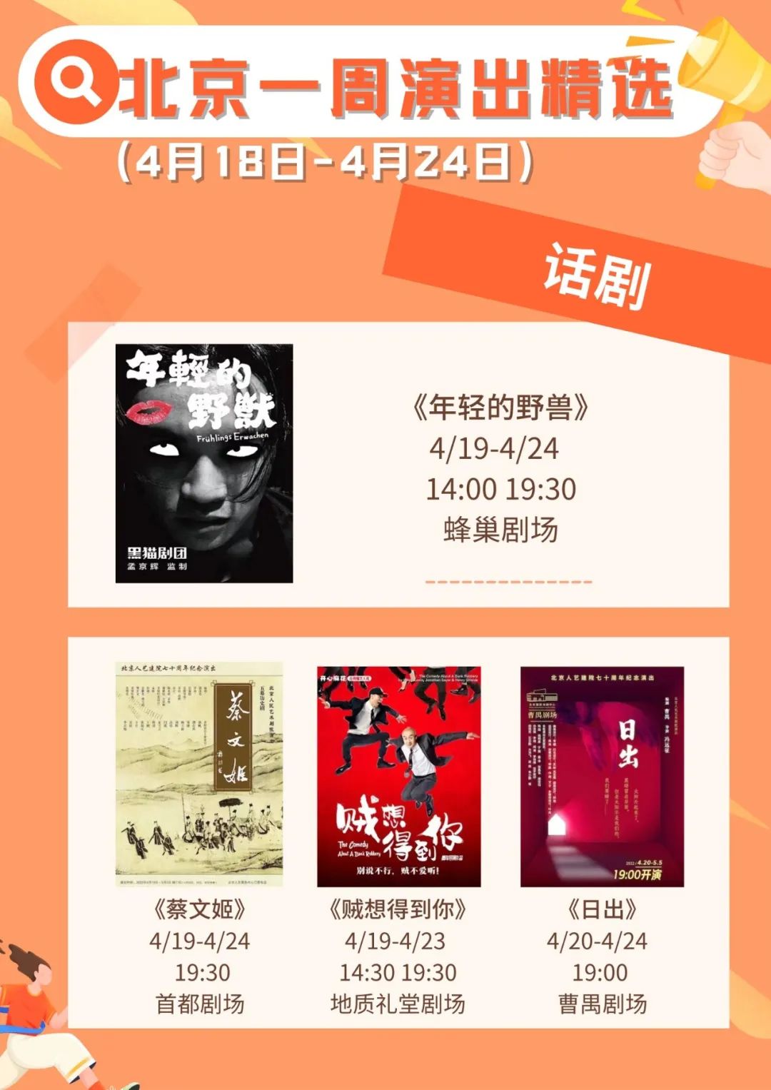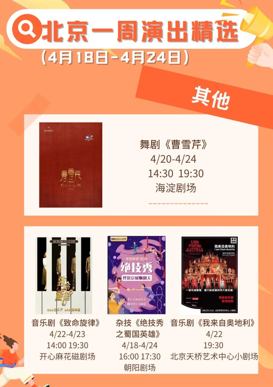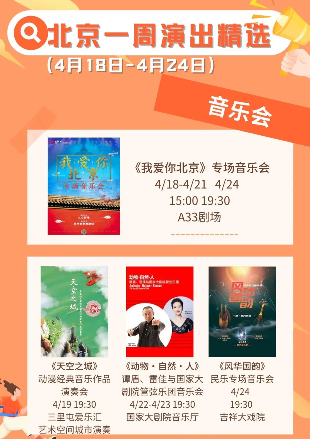 Tips:具体演出信息请在观演前咨询各演出机构。疫情防控期间仍需注意个人防护,观看演出时请全程佩戴口罩。