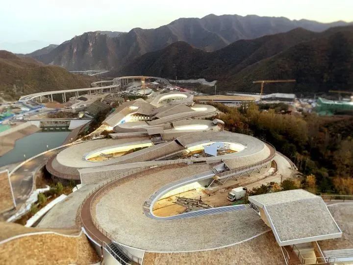位于半山腰的国家雪车雪橇中心同样开放待客。国家雪车雪橇中心弯度独特,由16个角度、倾斜度各异的弯道组成,包括世界上非常少见的360度回旋弯赛道,游人可沿着步行区参观雪橇内部,通过VR互动设备体验在雪橇赛道上飞驰的激情。