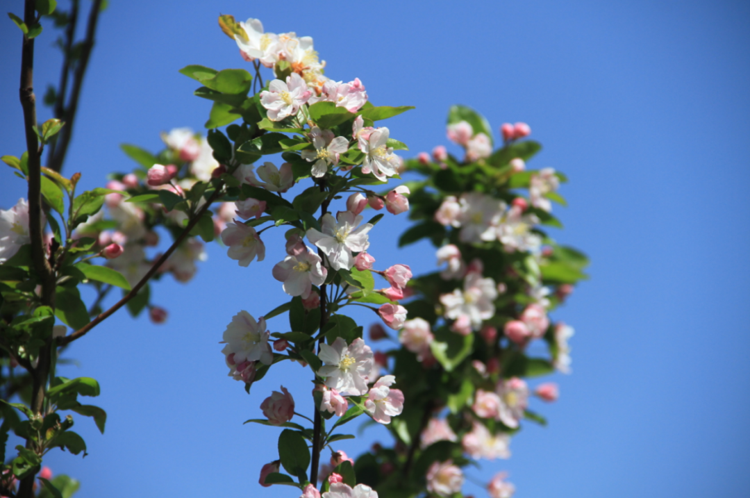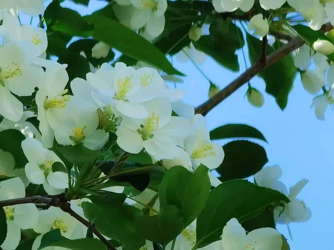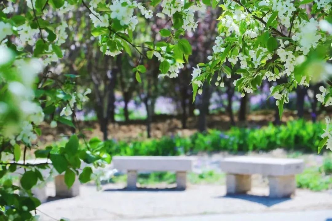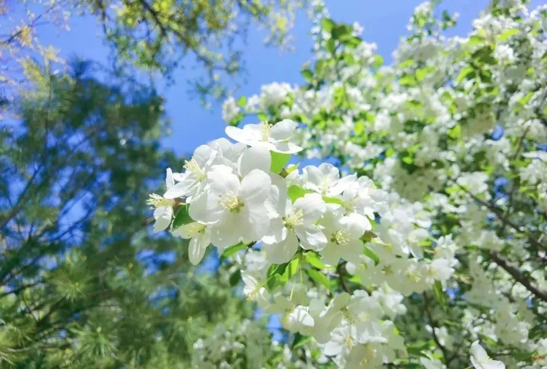 景区东门外电子屏的下方,白海棠开得星罗密布,随手一拍就是大片!