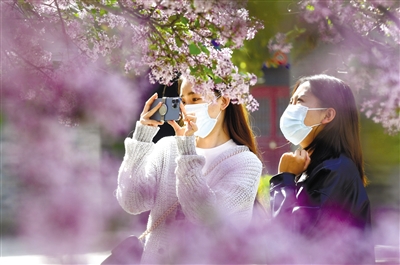 4月20日,市民在位于呼和浩特市的内蒙古将军衙署博物院观赏盛开的丁香花。丁香花是呼和浩特市的市花,大街小巷的丁香花争相怒放,淡淡幽香沁人心脾。内蒙古日报记者 王磊 摄