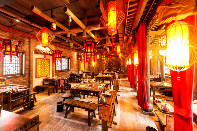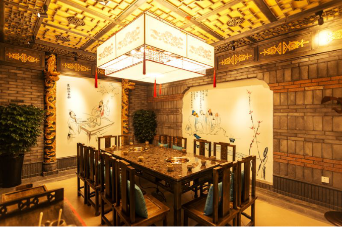 文化青砖、做旧木门、木雕画、木挂落、木弓典型的巴蜀文化,将中国传统装饰风格运用得洋洋洒洒,浓浓的巴蜀情节,尽显古朴典雅。各式造型别致的灯笼,八仙桌、长板凳……宛如置身于老成都街头的火锅馆子,气氛热烈,麻辣滚滚,一秒穿越到成都。不仅吃出了味道,更吃出了腔调,来石景山,必不可错过的美食之一就是小龙坎老火锅!