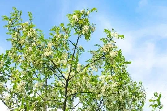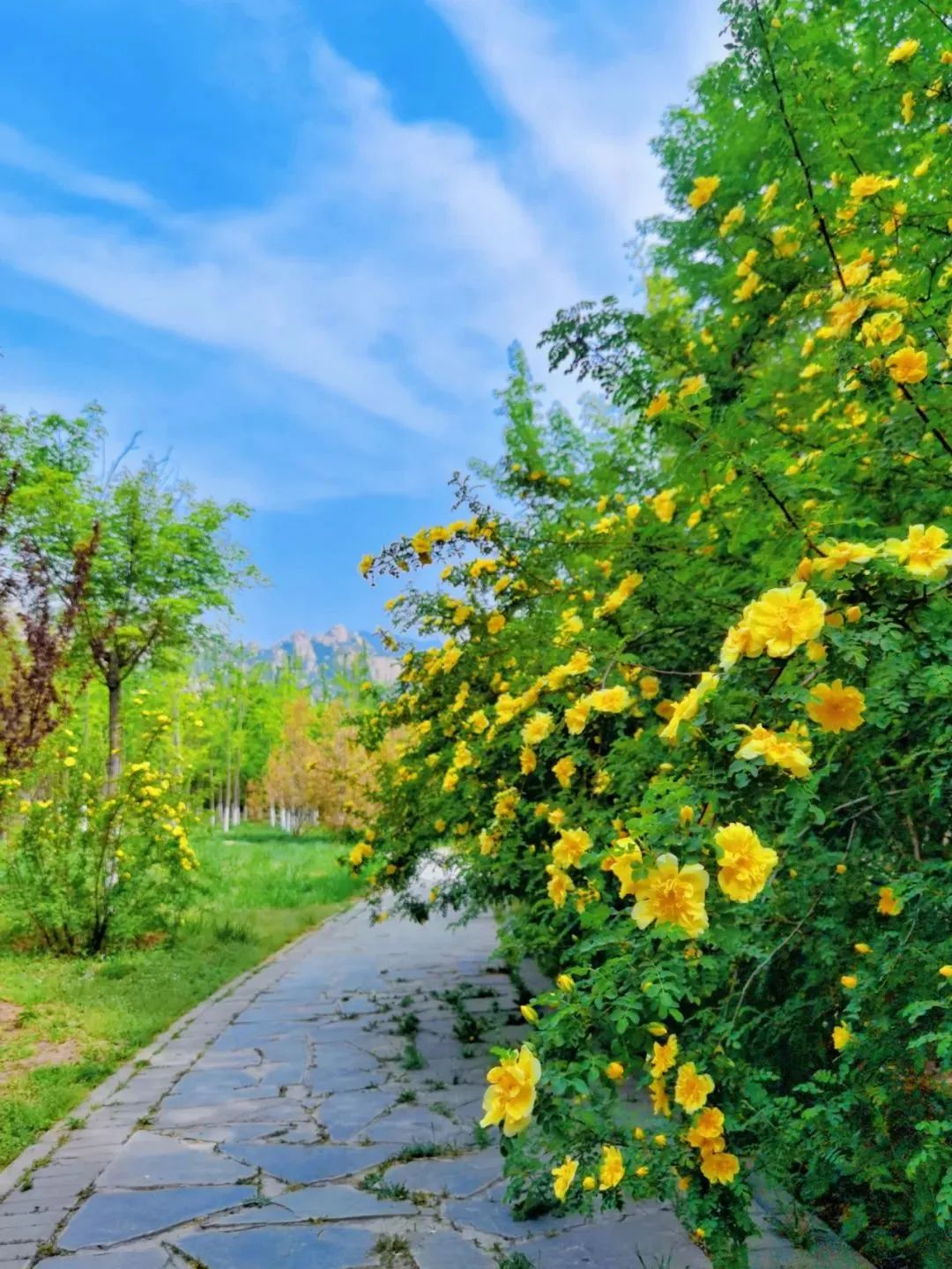 “槐花五月漾琼花,郁郁芬芳醉万家”。景区主路上开了一路的槐花,热热闹闹,挨挨挤挤,素而不寂,暖而不腻。