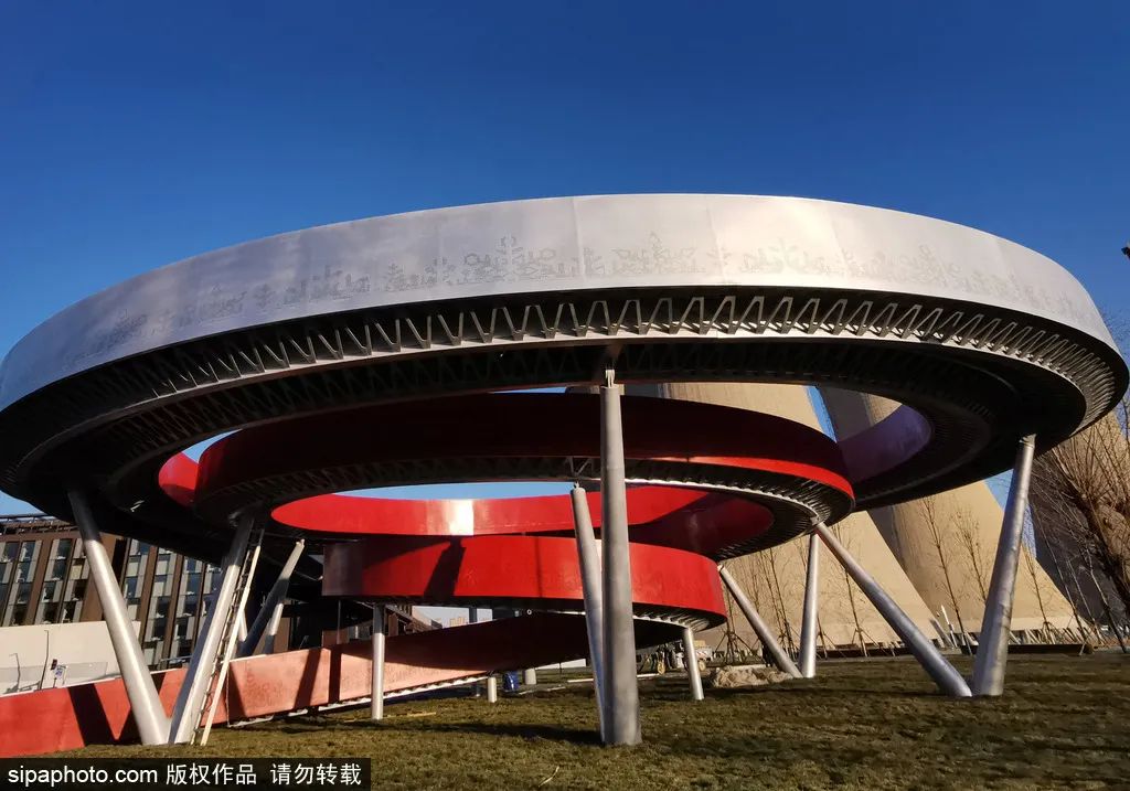“冰雪森林”景点就位于首钢滑雪大跳台下,开阔的绿草植被前,矗立着4座70米高冷却塔和滑雪大跳台,冬奥场馆、工业遗存、自然山水在这里完美融合。“冬奥之环”则是通过架在空中的高线公园空中步道与首钢园相连,可从空中直达群明湖。首钢大桥下的“桥间天地”,设置了桥下剧场等活动空间,目前也与首钢园实现连通。