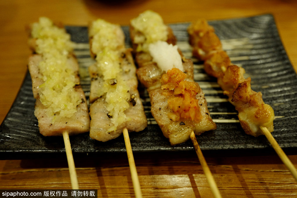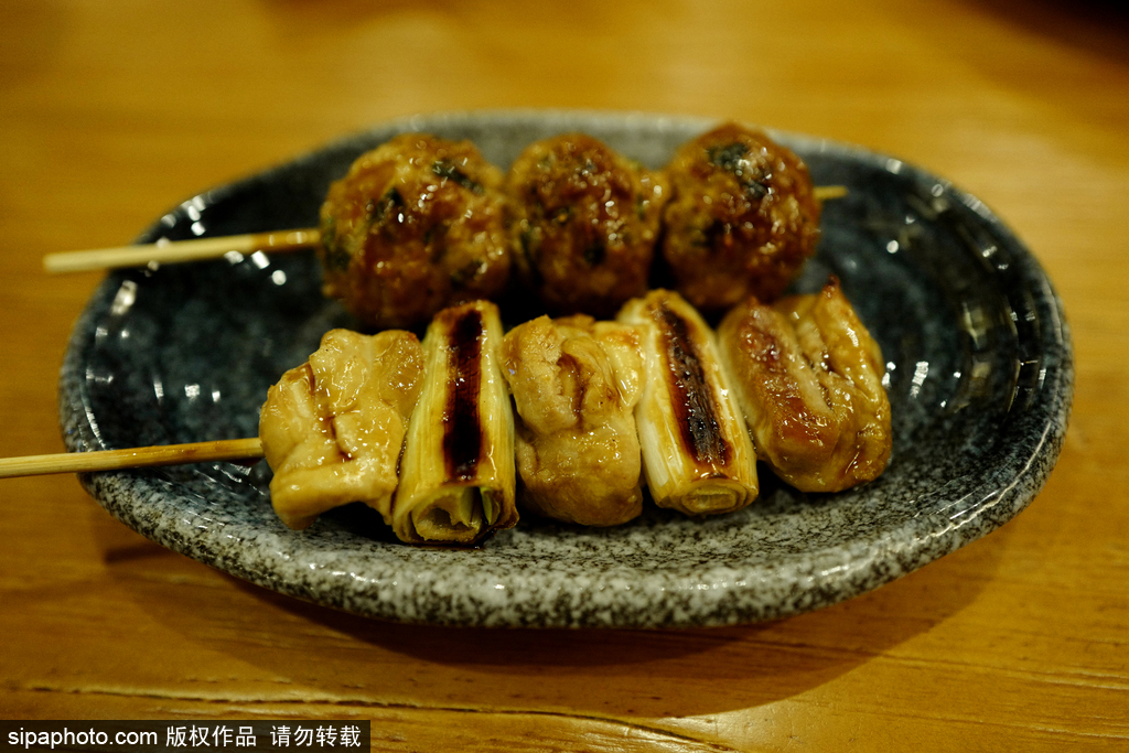 掀开门帘里面热闹得不得了,满座不说,吧台面前的炭火烤炉上各种烧鸟滋滋作响令人垂涎欲滴,与喝酒声,说话声融为一体,真是都市深夜颇具烟火气的角落了。