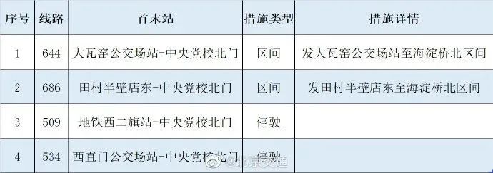 按照防疫工作要求,首末站为中央党校北门的4条公交线路采取临时调度措施。后续将配合封控,取线路临时调整措施。