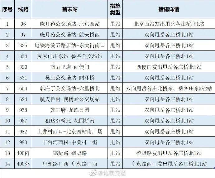 此外,途经丰台区岳各庄封控区的14条公交线路采取甩站措施。