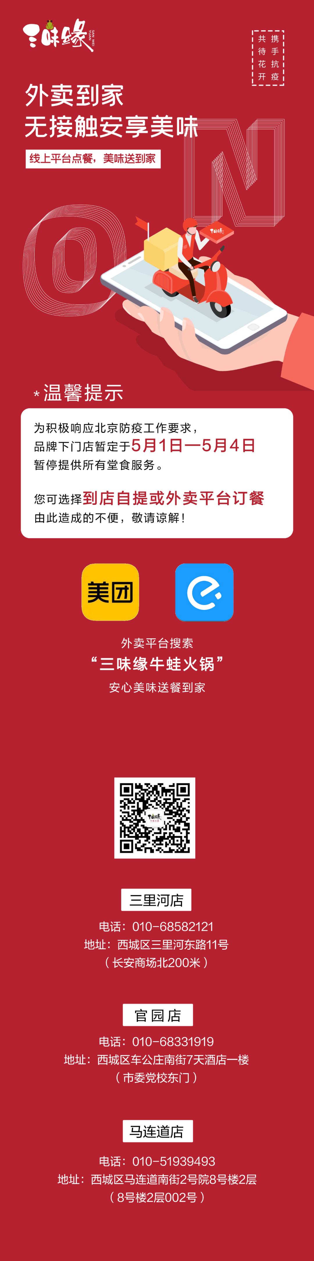 5月5日,北京市餐饮单位暂停堂食第5天,北京市发布《暂停堂食服务期间餐饮行业工作指引(2022年5月第二版)》,指引原文可搜索“北京市商务局”微信公众号查询。北京烹饪协会持续联合品牌餐企发布外卖服务指南。助企纾困,便利市民外卖外带自提等美食需求。今日推出第四期。
