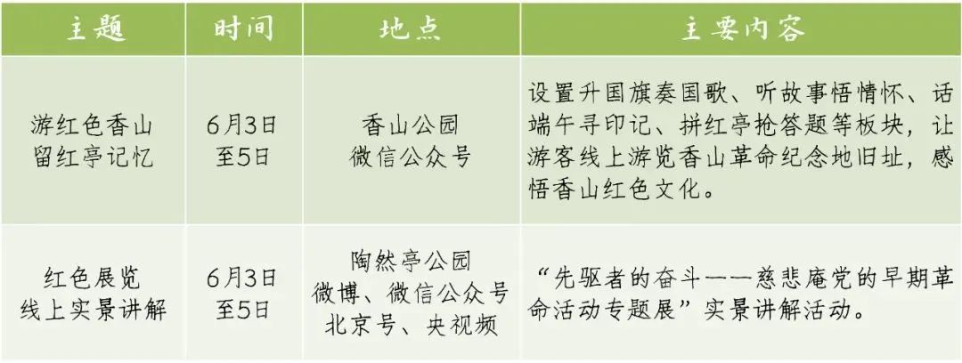 端午假期期间,北京市属公园将推出四个板块、25项端午节文化活动,通过线上“民俗游、科普游、红色游和线上观展”活动,与大家共度安全、有意义的端午假期。