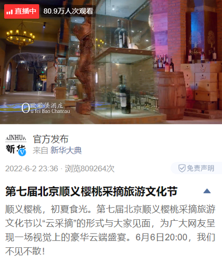 本届线上樱桃采摘旅游文化节,邀请央视主持人加盟助阵,引领全程线上直播,带给大家不一样的直播体验。同时,还有网红大V同步进行直播,以年轻人喜爱的方式进行多点发起、同步推进、多维视角的直播,用镜头将观看者零距离置于现场,沉浸式体验云游顺义。
