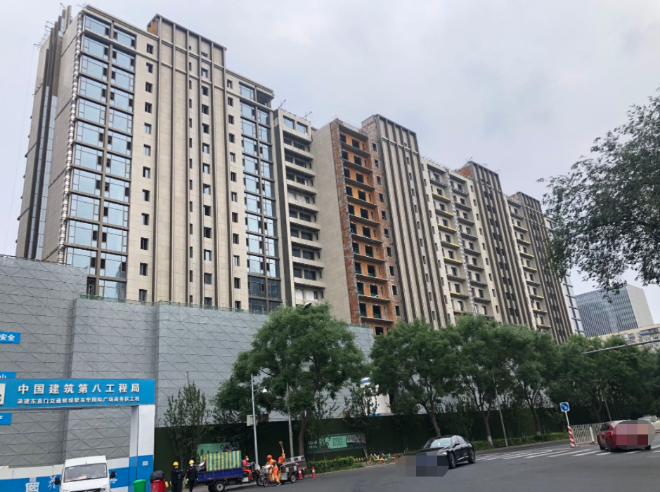 近日,位于东直门桥东北角的东直门交通枢纽暨东华国际广场商务区项目主体结构竣工,写字楼、住宅和酒店等主体建筑露出全貌,施工工人正在进行内部砌筑结构建设和精装修。预计今年年底商务区将基本完工,投用后东北二环将再添一个新产业空间载体。