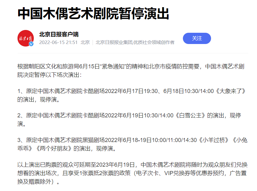 根据疫情防控工作要求和部署,目前北京市部分景区、地下密闭空间经营场所、演出和公共交通运营等有所调整,市民出行请注意。