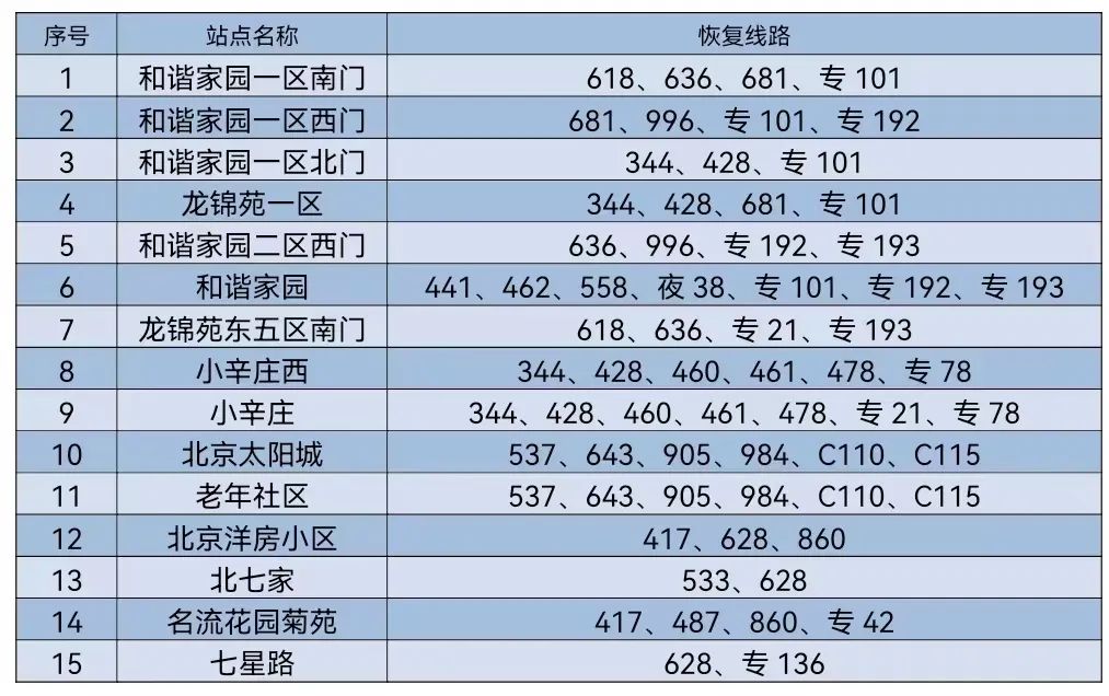 按照防疫工作要求,对前期途经昌平区封管控区域周边边采取甩站措施的35条线路,自2022年6月16日首班车起,恢复正常运营。