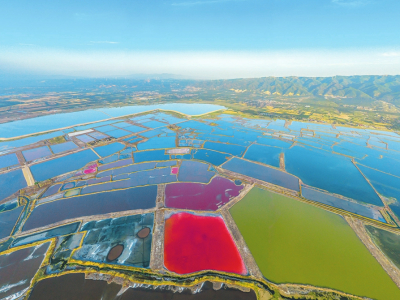 仲夏时节,随着气温升高,山西运城盐湖湿地呈现出色彩斑斓的美丽景观。近年来,山西运城市大力实施“退盐还湖”“还湖于民”生态修复工程,把盐湖从矿区、工业区变为生态保护区、旅游区。