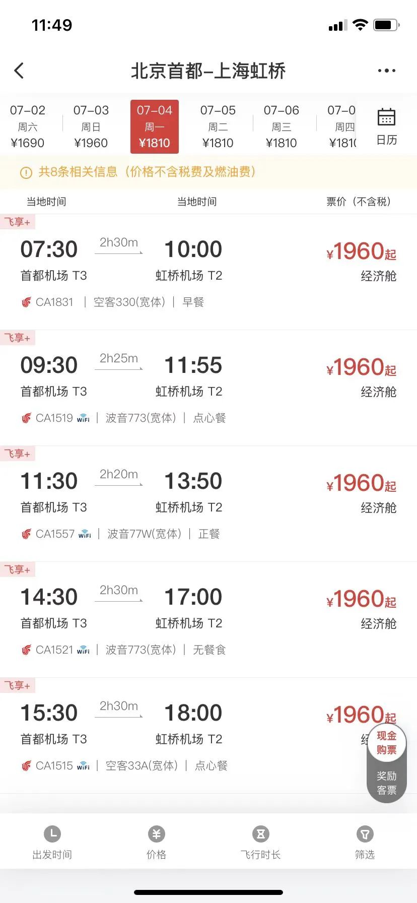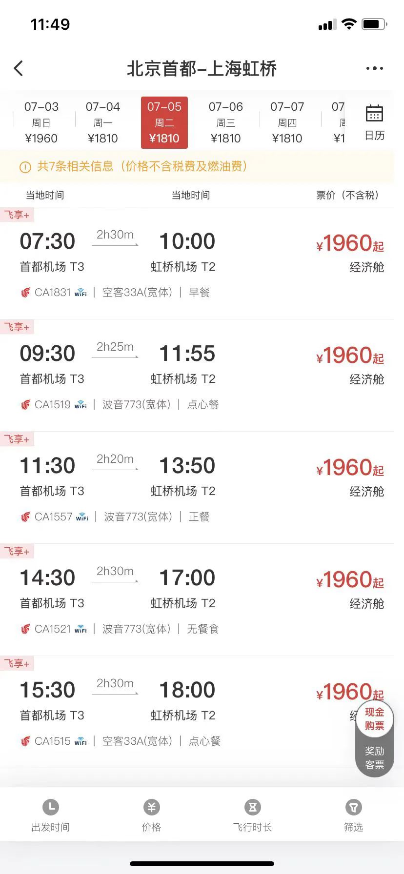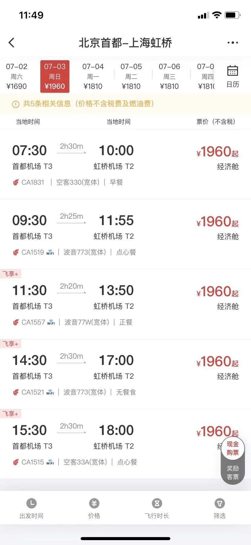 2.航班实际信息以销售时出票为准。