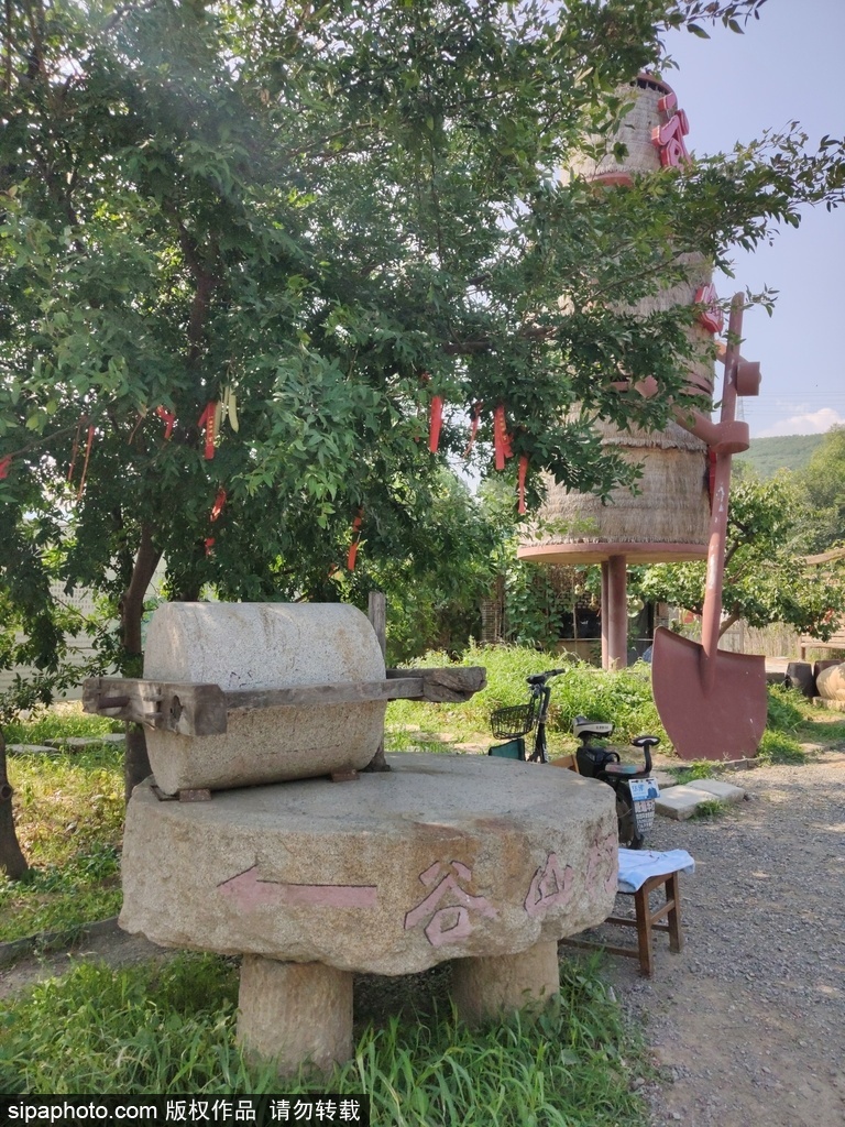谷山村作为特色农耕园区,怀旧风味十足,园中摆放着各式各样的老物件,脱粒机、磨盘碾子,还有怀旧主题餐厅、主题公社等革命时期的老建筑,特色墙上写着毛泽东语录“忙时吃干、闲时吃稀””……随便走到一处都能勾起一段回忆杀。