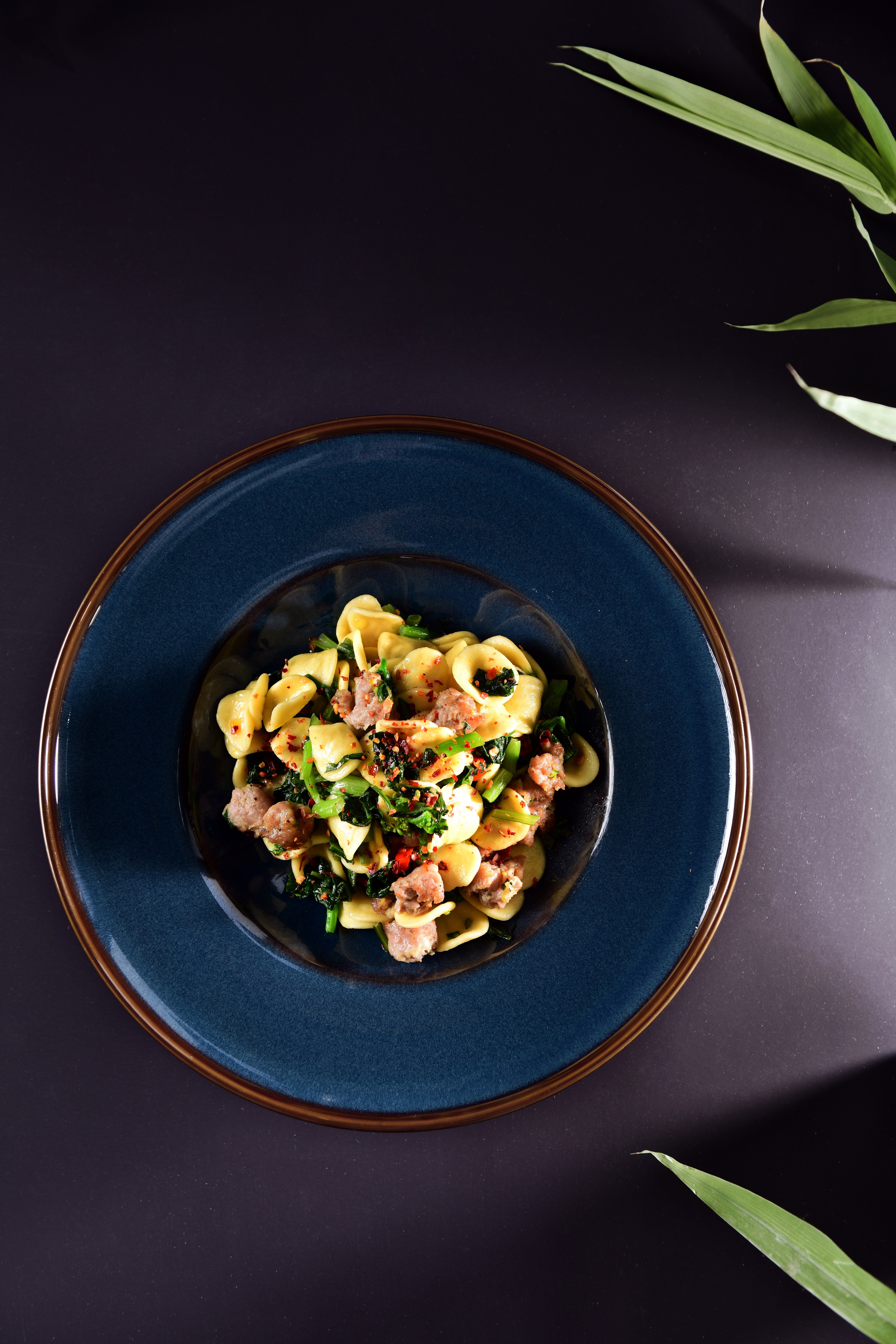 意大利猫耳朵面,花菜心,意大利香肠,帕马森芝士和辣椒