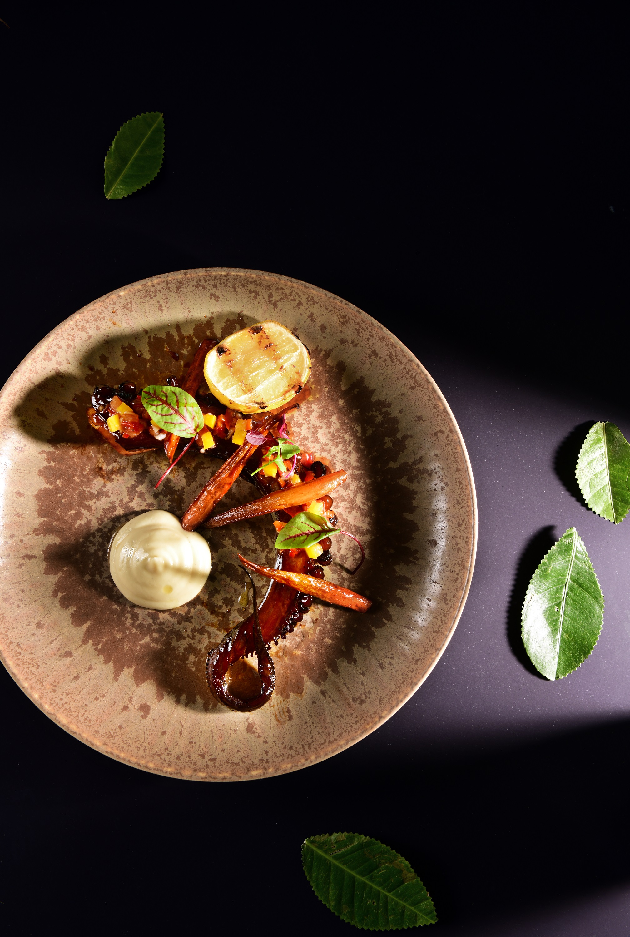 Josper碳烤八爪鱼配胡萝卜,芹菜头泥和莎莎酱
