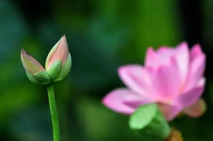 一茎生两花,花各有蒂,蒂与花茎连在一起,因此被称为“并蒂莲”,也称并头莲、同心芙蓉、合欢莲、瑞莲。并蒂莲的出现率只有十几万分之一,是花中珍品。
