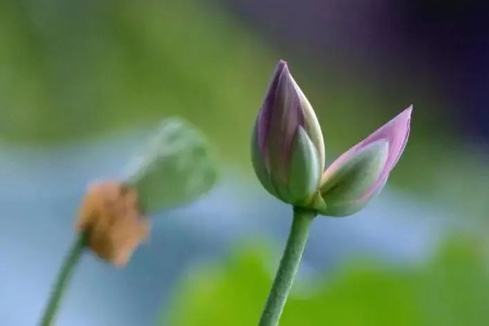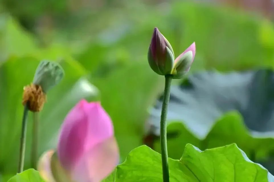 近期,世界花卉大观园天鹅湖西侧发现了一朵含苞待放的并蒂莲。