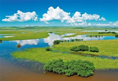 在内蒙古大地上,奔流着无数条大小河流,“镶嵌”着无数个宛若蓝宝石般的大小湖泊。内蒙古的湿地生态系统主要有河流、湖泊、沼泽、人工湿地4大类,这既是鸟类与鱼类等动物类群的重要栖息地,也是内蒙古极重要的水源涵养区。截至2021年,内蒙古湿地总面积达到9015.9万亩,占全国湿地面积的11.26%,居全国第三位。