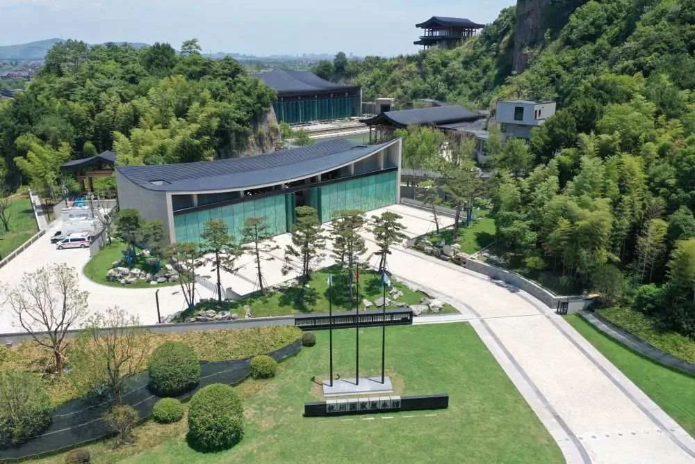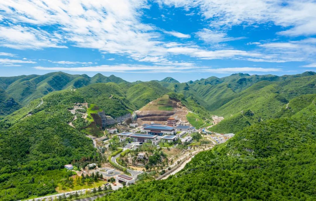 中国国家版本馆中央总馆依山而建,所在地原为废弃采石场,三面环山,主体建筑突出,在蓝天白云掩映下,与自然风光融为一体。