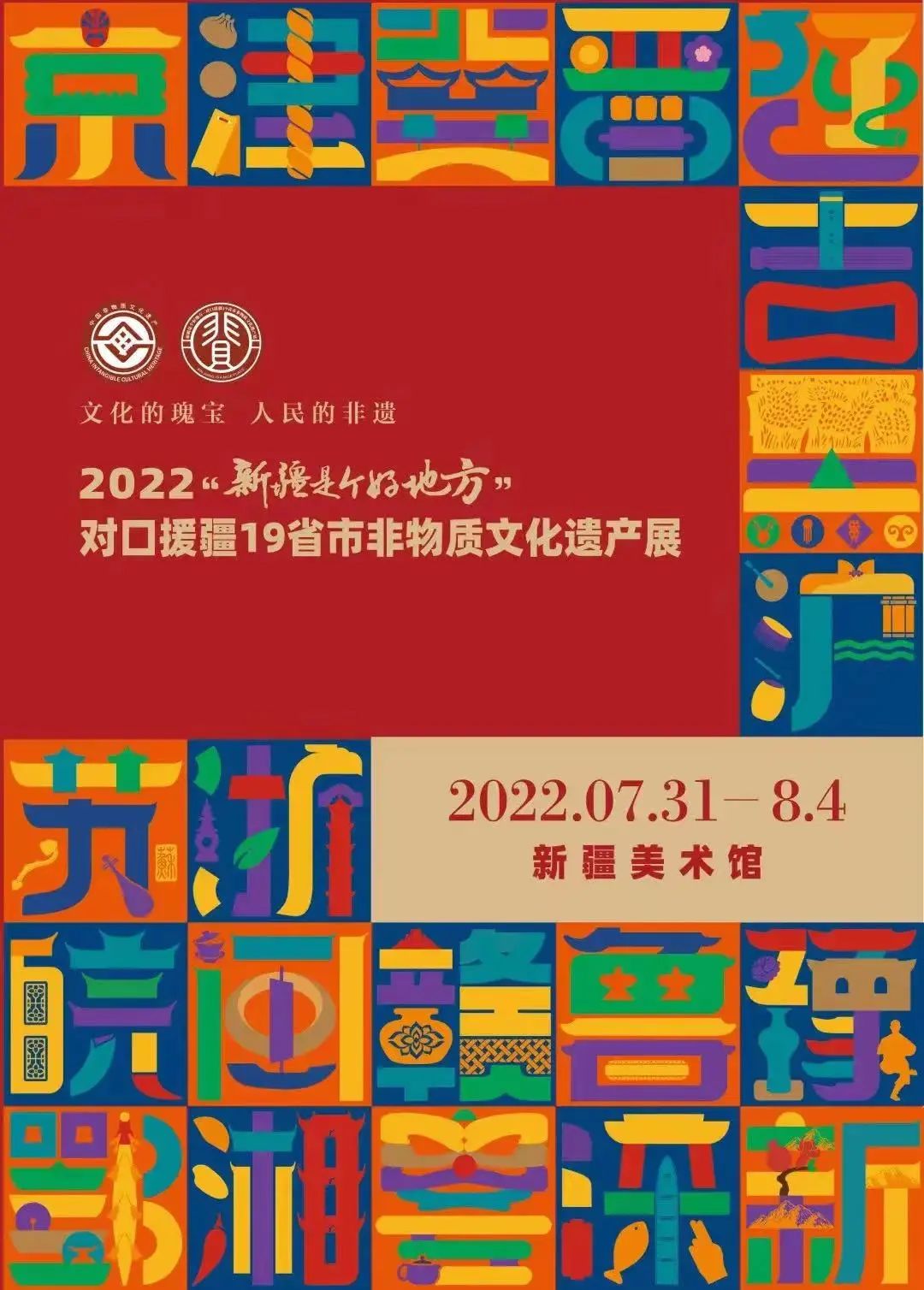 2022年7月31日至8月4日,由文化和旅游部、新疆维吾尔自治区人民政府主办的“新疆是个好地方”对口援疆19省市非物质文化遗产展在新疆美术馆举办,邀请对口援疆19省市193项非遗代表性项目、新疆14地州市和兵团146项非遗代表性项目参展。北京市文化和旅游局组织京剧、景泰蓝制作技艺、北京玉雕、剧装戏具制作技艺、花丝镶嵌制作技艺、一得阁墨汁制作技艺、北京绢人和盘扣制作技艺等非遗代表性项目参加展示活动。