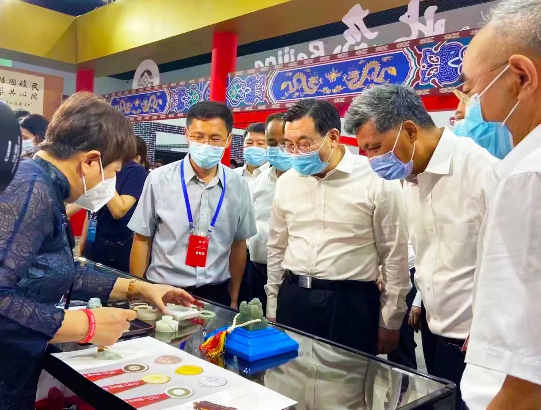文化和旅游部党组书记、部长胡和平 新疆维吾尔自治区党委书记马兴瑞 新疆维吾尔自治区党委副书记、自治区主席艾尔肯·吐尼亚孜参观北京展台